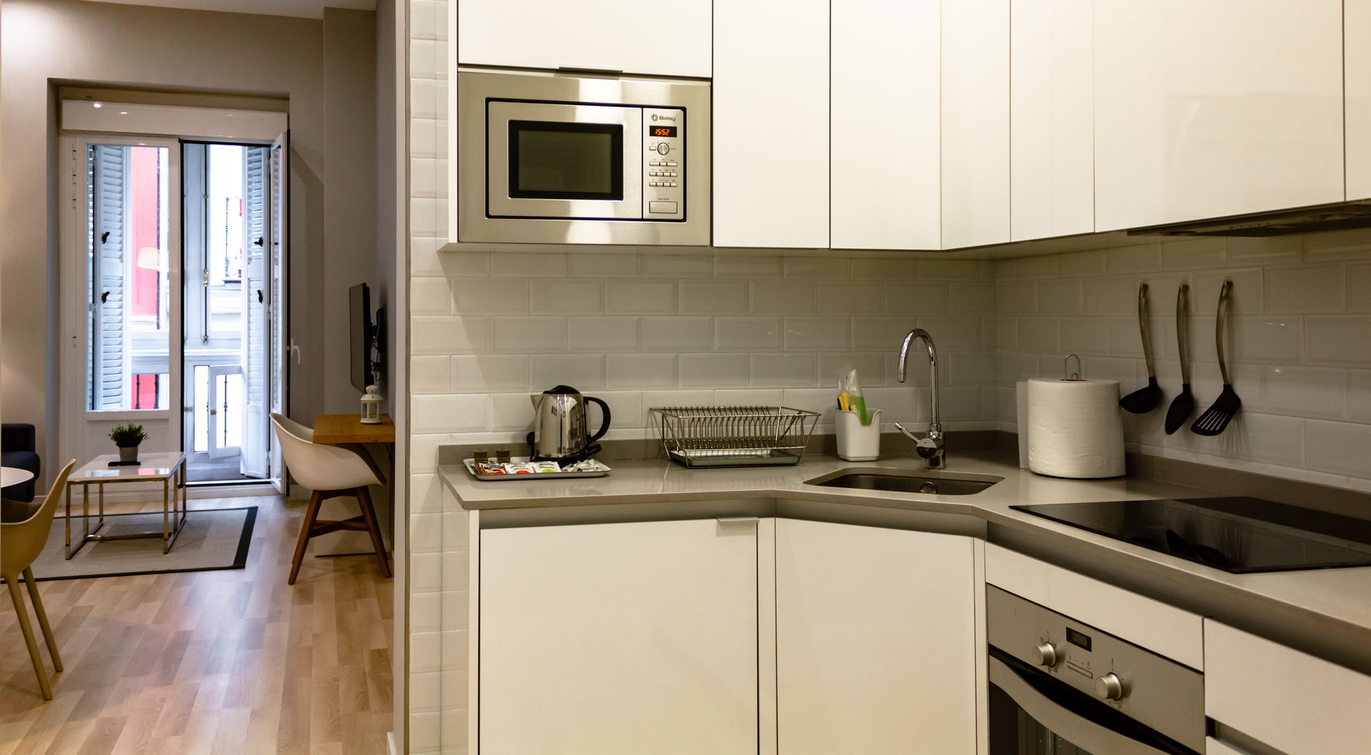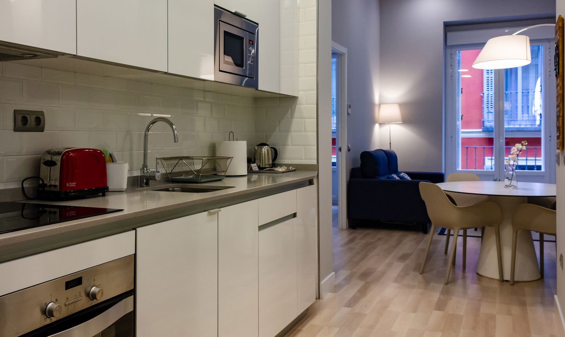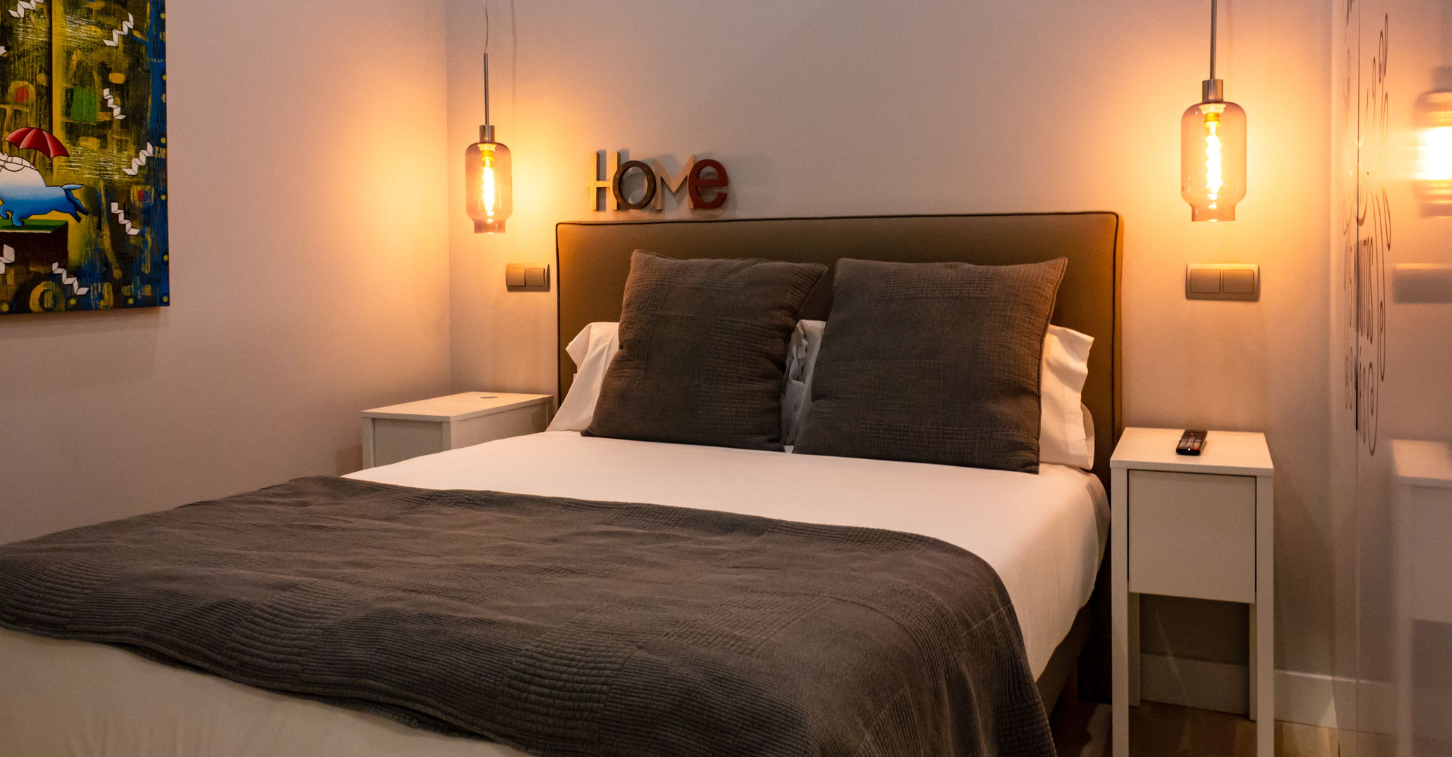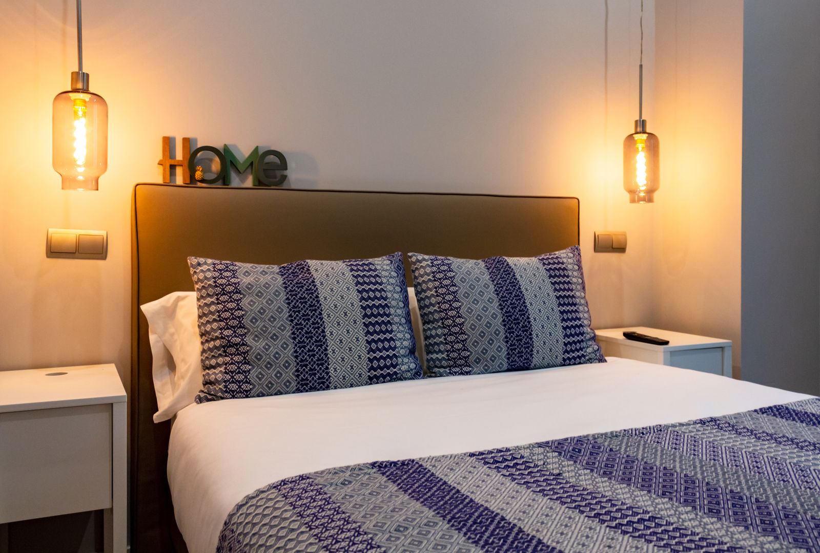 Our most spacious and bright option. It has two bedrooms with double beds, two full bathrooms, a living area, a fully equipped kitchen, and outdoor balconies. Ideal for families or groups who want to share space without sacrificing privacy and comfort.