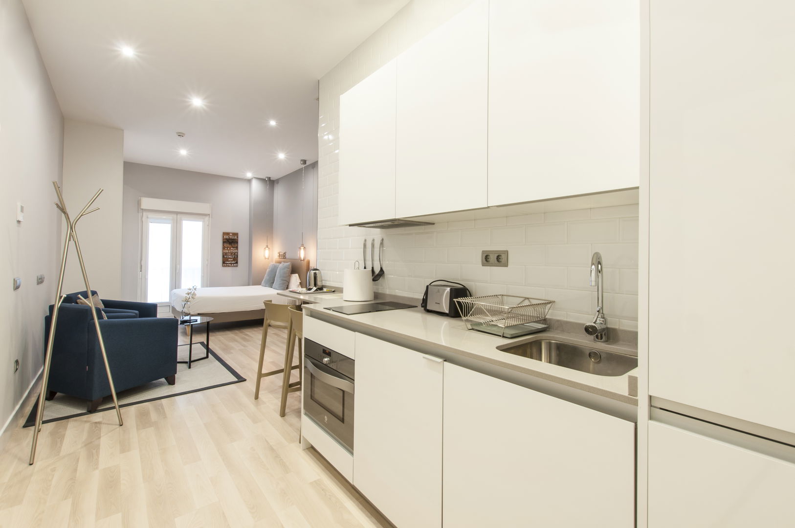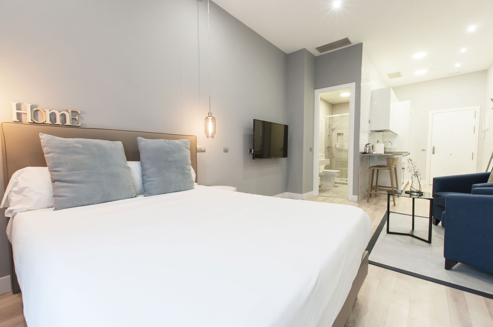 Ideal for couples or solo travelers, this compact and functional space offers a double bed, fully equipped kitchen, private bathroom, and interior courtyard views that guarantees tranquility and rest. Its modern design makes the most of every square foot to offer comfort without sacrificing space.
