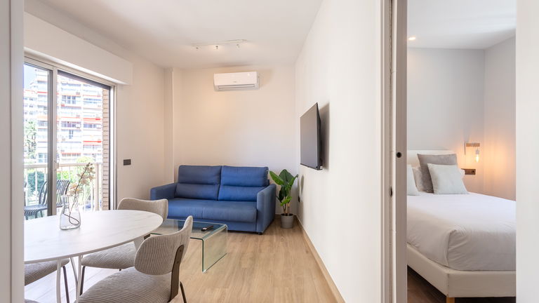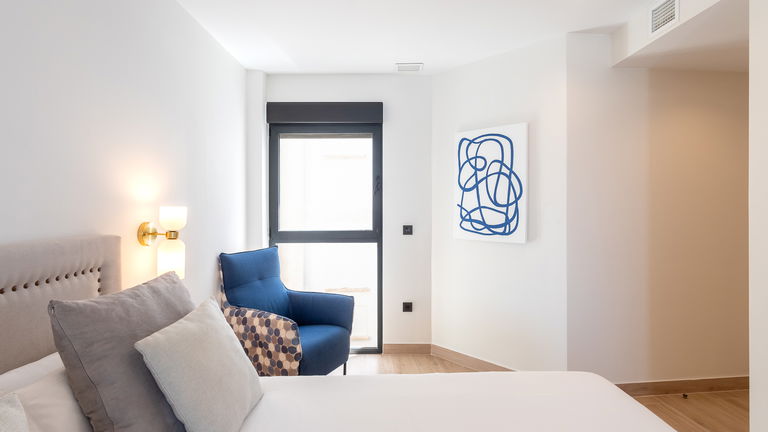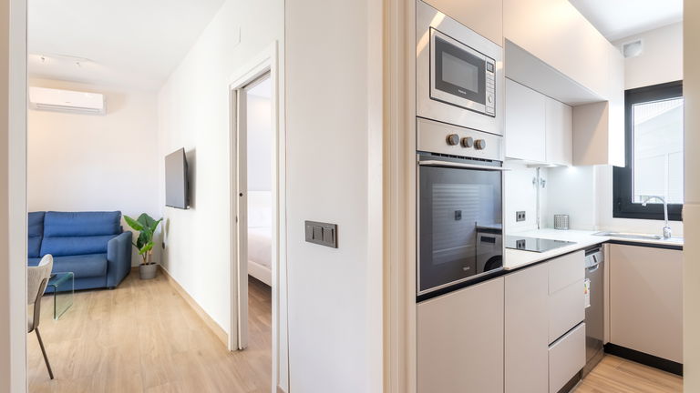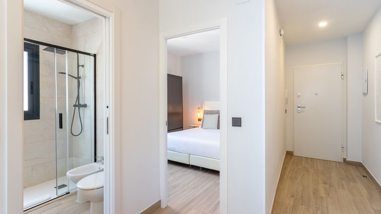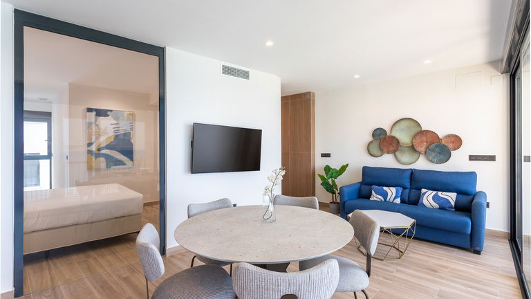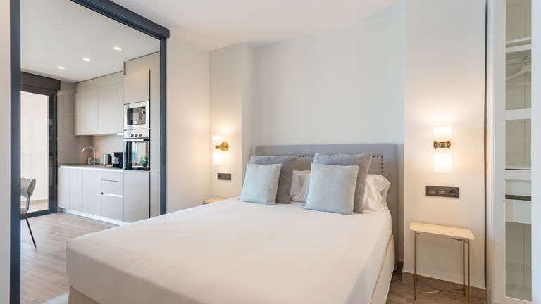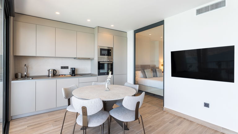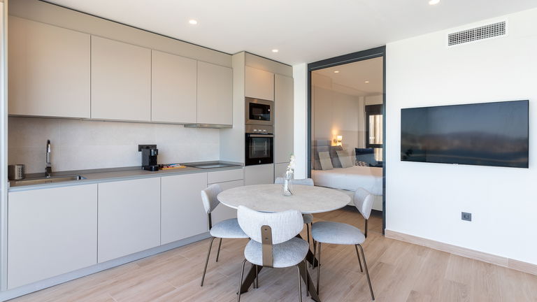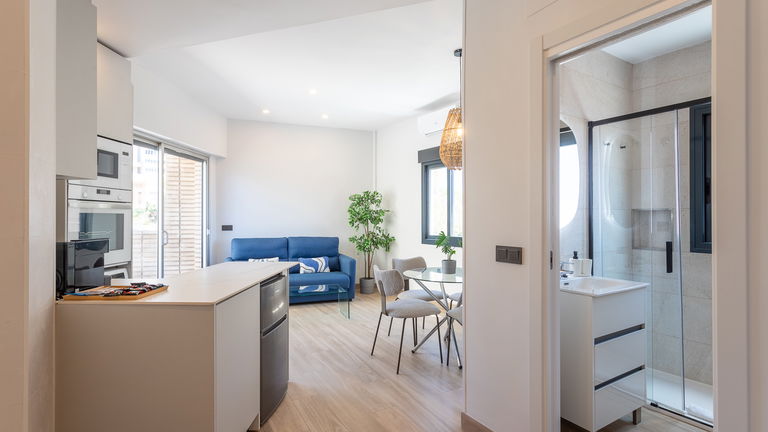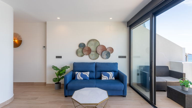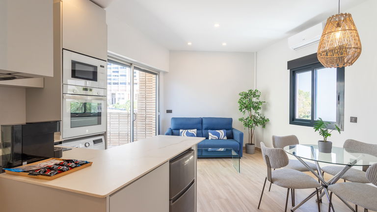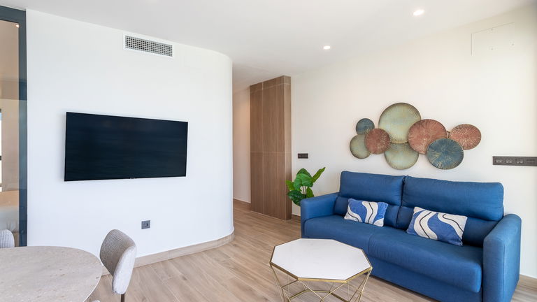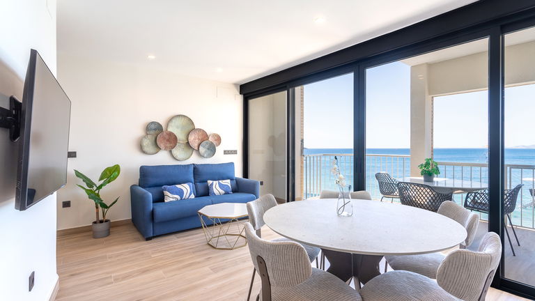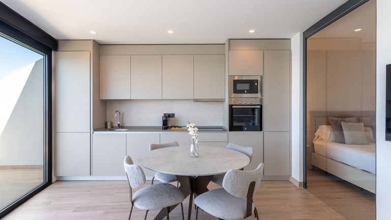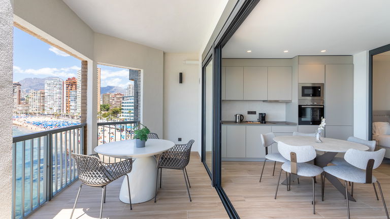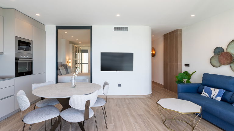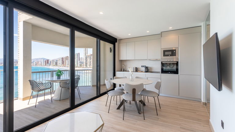 The jewel of the building. This penthouse stands out for its direct views of the Mediterranean from a large private terrace. Inside, there is a double bedroom, a living room with a sofa bed, a designer kitchen and meticulous details. It is ideal for those seeking a superior experience with spectacular panoramic sea views.