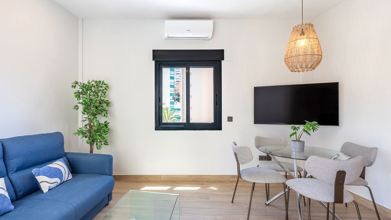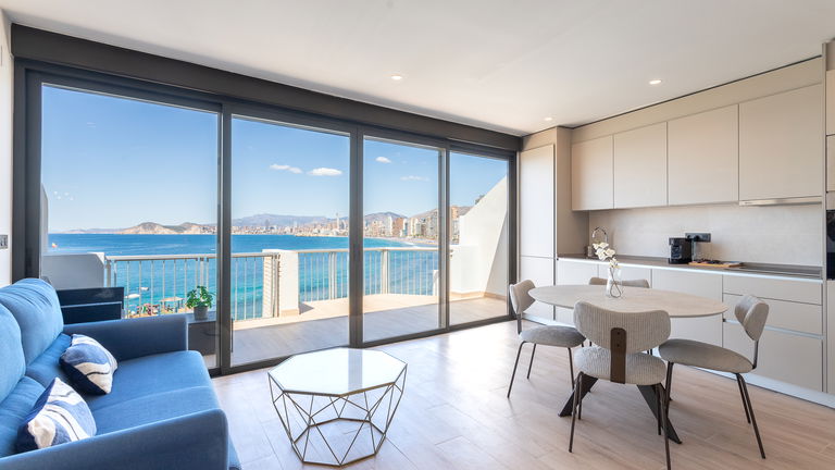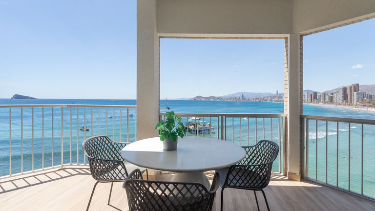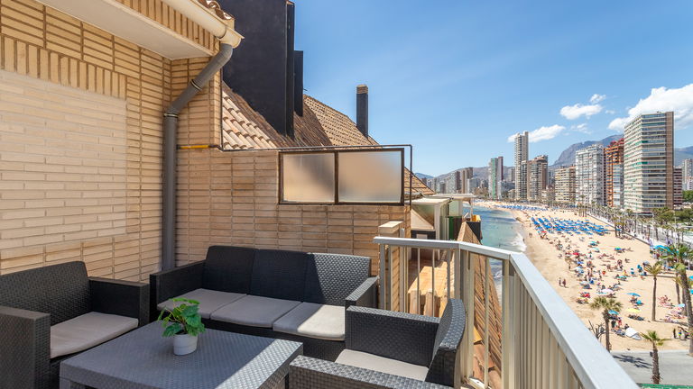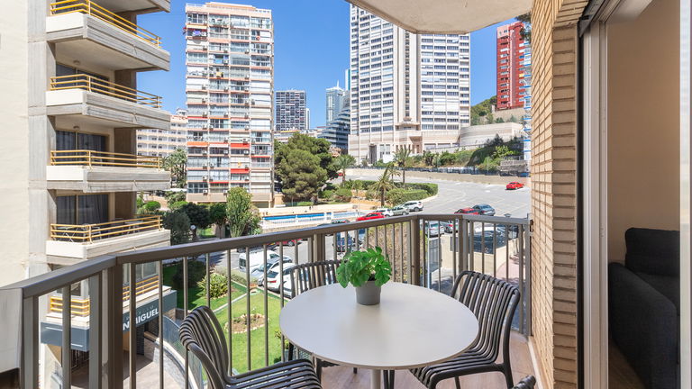 A charming space with a private terrace offering side views of the sea and Benidorm Bay. It has a double bedroom, a living room with a sofa bed, a fully equipped kitchen and a pleasant outdoor terrace where you can enjoy breakfast or watch the sunset. Perfect for couples who value privacy and tranquillity.
