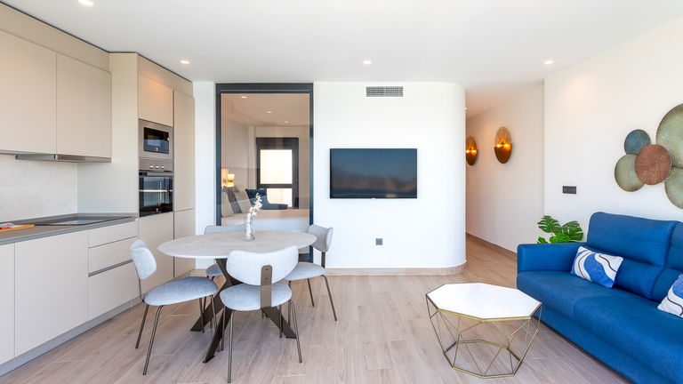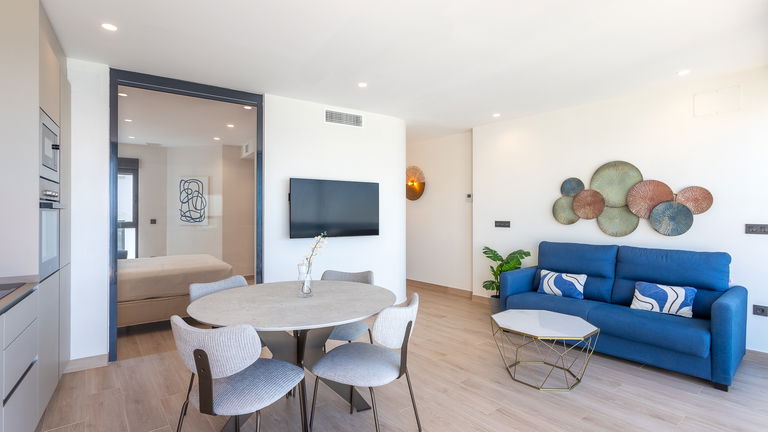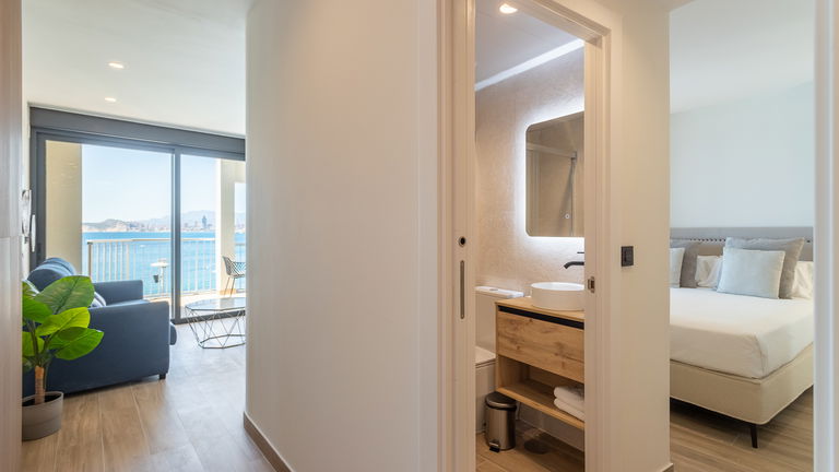 With privileged sea views, this type of apartment offers two bedrooms with double beds, a spacious living room, modern kitchen, full bathroom and outdoor balconies. Ideal for those who don't want to compromise on a panoramic view of the Mediterranean without sacrificing space and comfort.