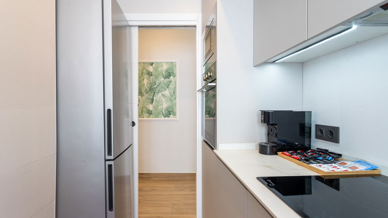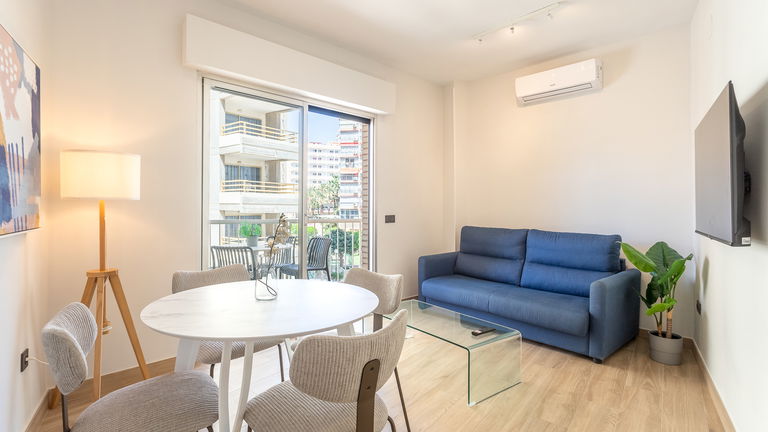 Located at street level, this apartment surprises with its spaciousness and brightness. It has a large window with sea views, a double bed and a comfortable sofa bed in the living room. The fully equipped kitchen allows you to prepare any meal as if you were at home. It is ideal for couples seeking privacy or small families who want a practical and accessible stay.