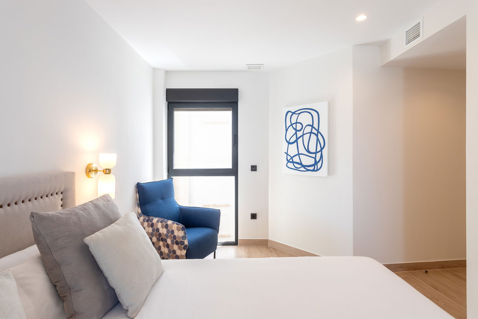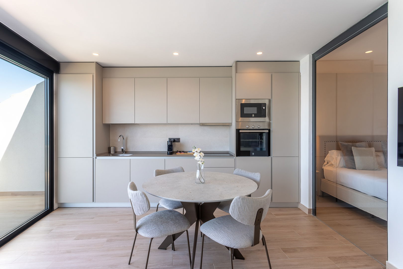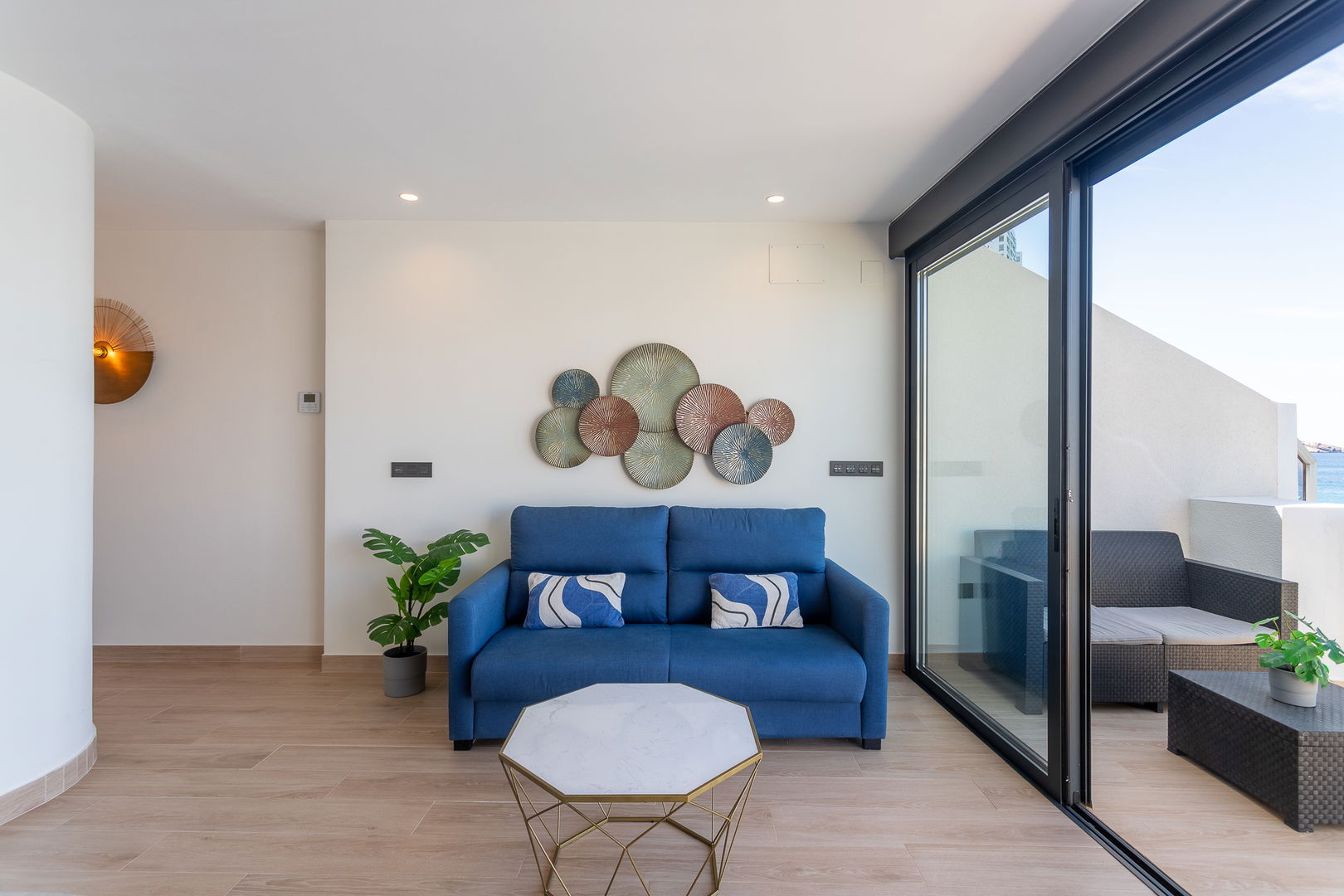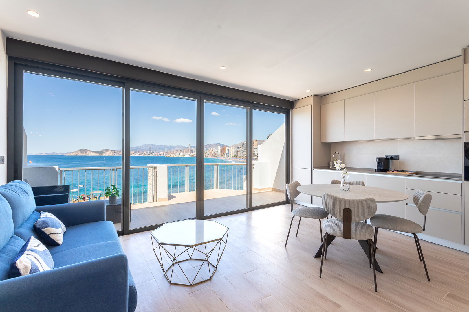 The jewel of the building. This penthouse stands out for its direct views of the Mediterranean from a large private terrace. Inside, there is a double bedroom, a living room with a sofa bed, a designer kitchen and meticulous details. It is ideal for those seeking a superior experience with spectacular panoramic sea views.