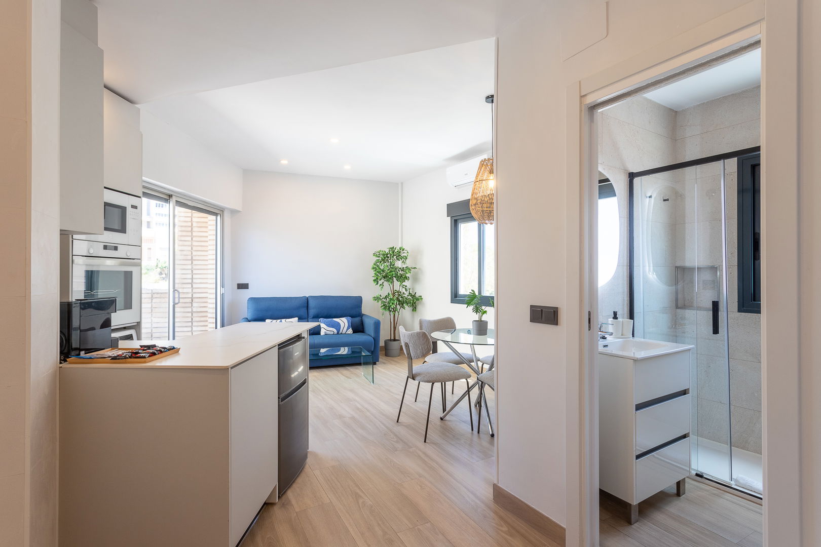 A charming space with a private terrace offering side views of the sea and Benidorm Bay. It has a double bedroom, a living room with a sofa bed, a fully equipped kitchen and a pleasant outdoor terrace where you can enjoy breakfast or watch the sunset. Perfect for couples who value privacy and tranquillity.