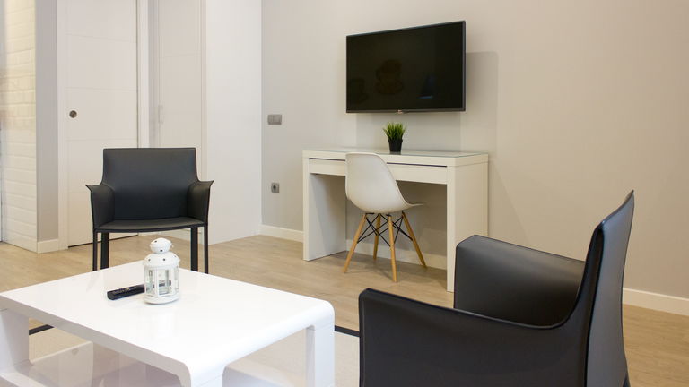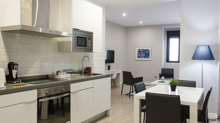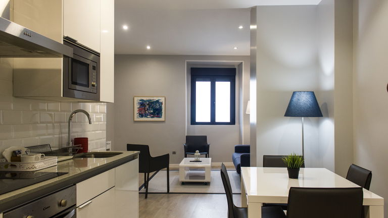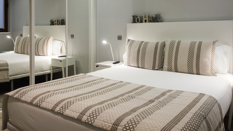 Disponemos de dos variantes de esta tipología. Uno de ellos cuenta con dos dormitorios dobles, un baño completo, cocina equipada y balcones que aportan luminosidad a todas las estancias. El otro ofrece además un aseo adicional junto al salón, ideal para estancias en grupo que requieren mayor comodidad.