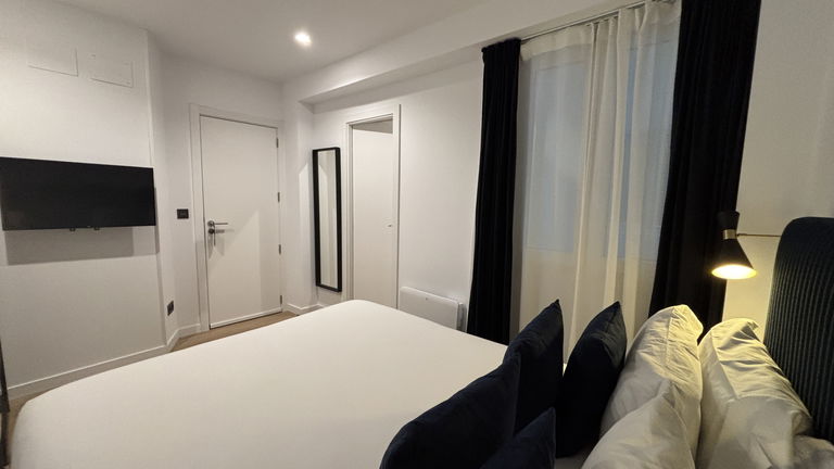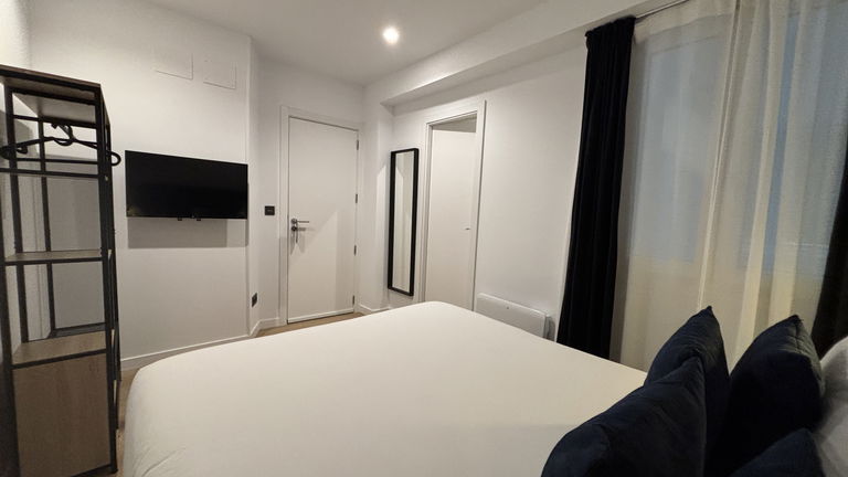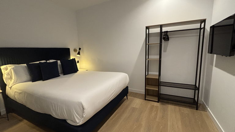 Una propuesta acogedora y silenciosa. Ubicada en la parte interior del edificio, esta habitación garantiza un descanso tranquilo lejos del bullicio de la ciudad. Aunque su tamaño es reducido, cuenta con todo lo necesario para una estancia práctica y relajada.